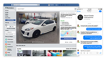 As a Facebook Marketplace Inventory Partner, EDealer offers your Mazda dealership the ability to sell used and certified pre-owned inventory on Facebook Marketplace. If your dealership has a Facebook Page, we’ll syndicate your used & certified pre-owned inventory and list the units on Facebook Marketplace. Each vehicle will appear as a separate listing and include a photo, description, year, make, model, price, mileage, VIN, and the dealership's name and location. You can even communicate with the potential buyers instantaneously, via Messenger chat.